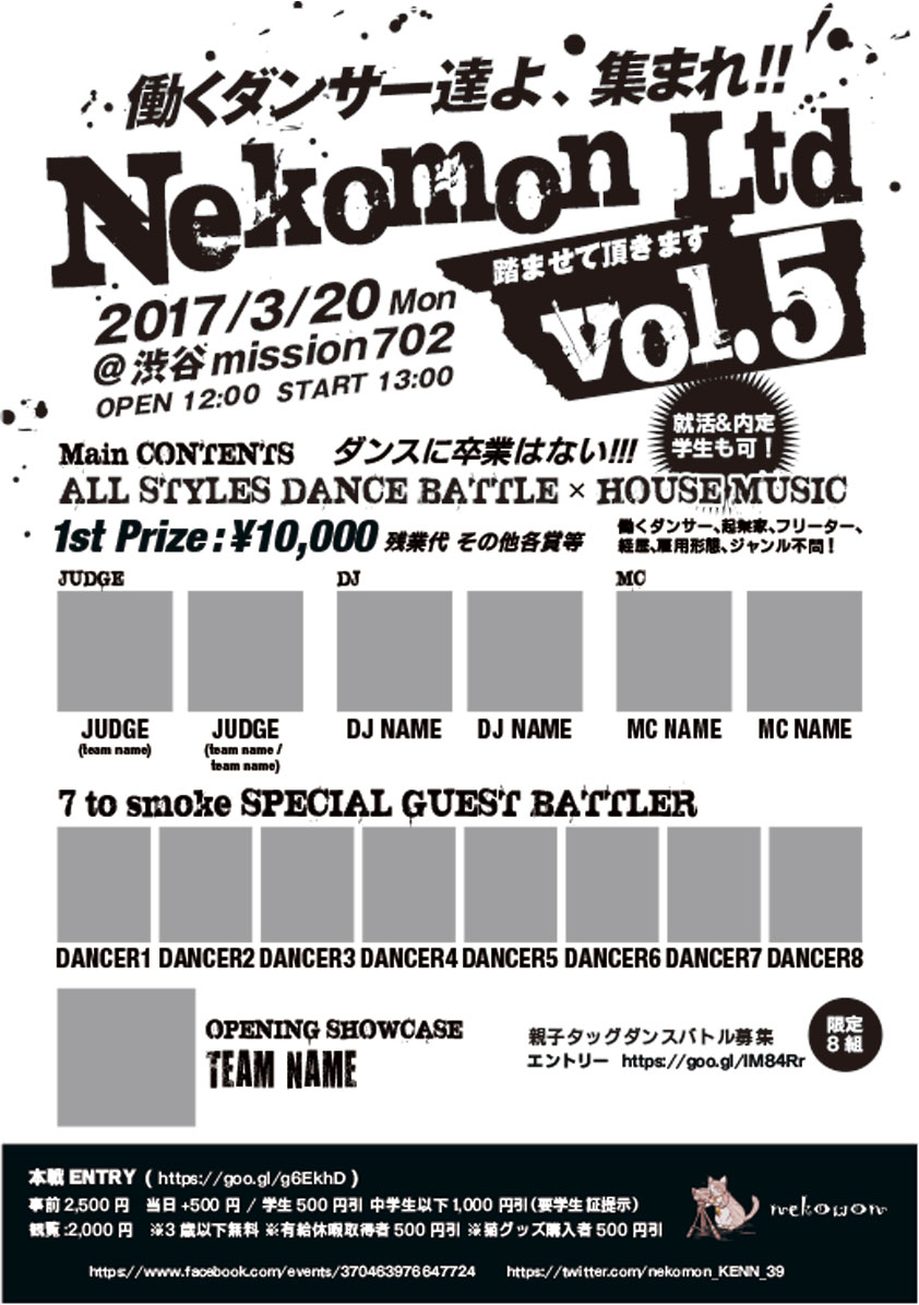 イベントに来て欲しいターゲットが明確にある場合は、分かりやすい見出しやキャッチコピーを付けてあげます。この場合はイベントタイトルの上に「働くダンサー達よ、集まれ!!」と入れるとことで社会人を中心としたイベントだよ、と分かるようにしています。
