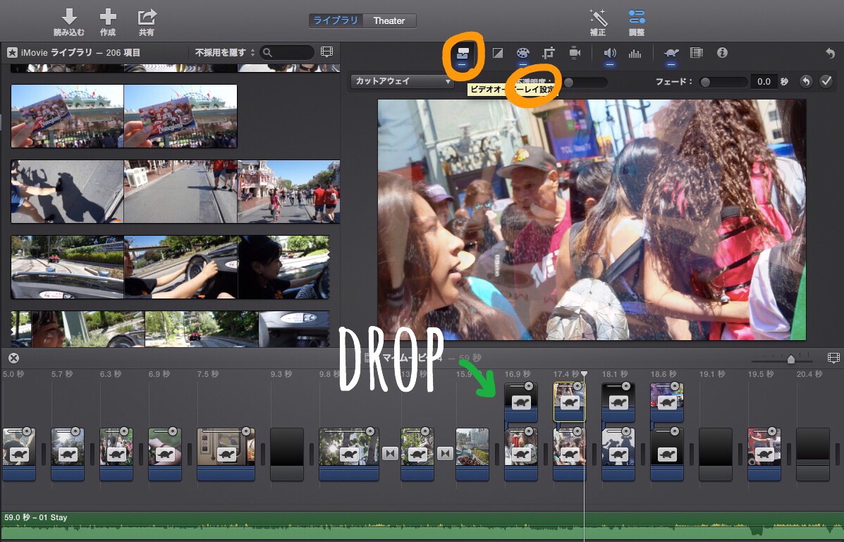 これは、元の動画の上に、重ねたい動画をドロップすればできます