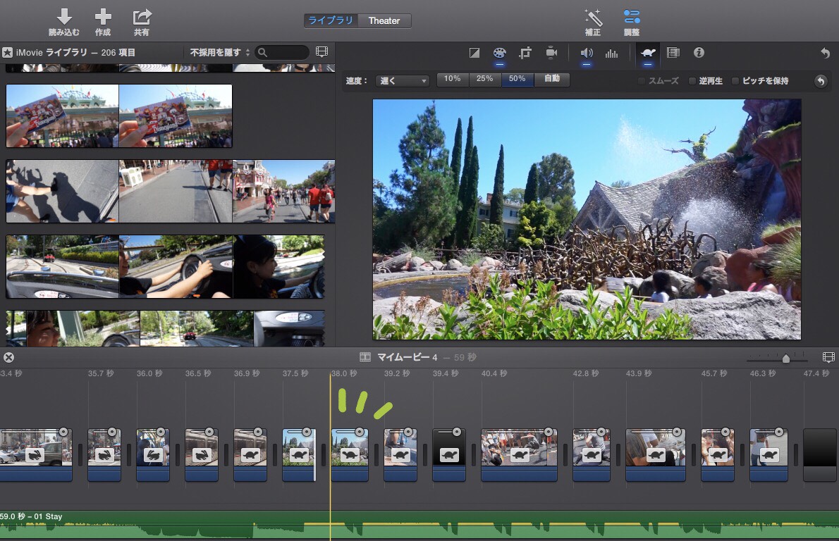 不透明度というところで、2つの映像それぞれの透明度を調整できます!