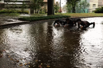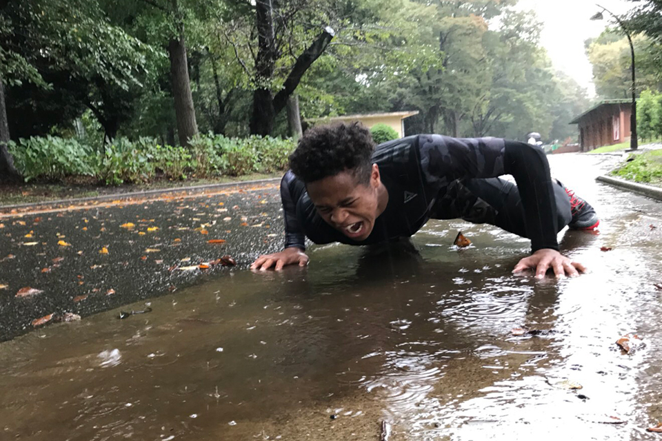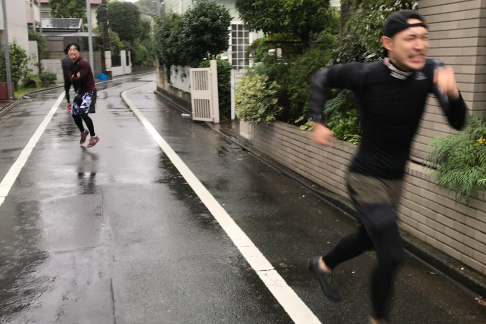大雨の中、街を全力疾走!