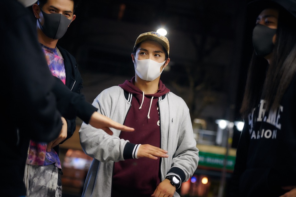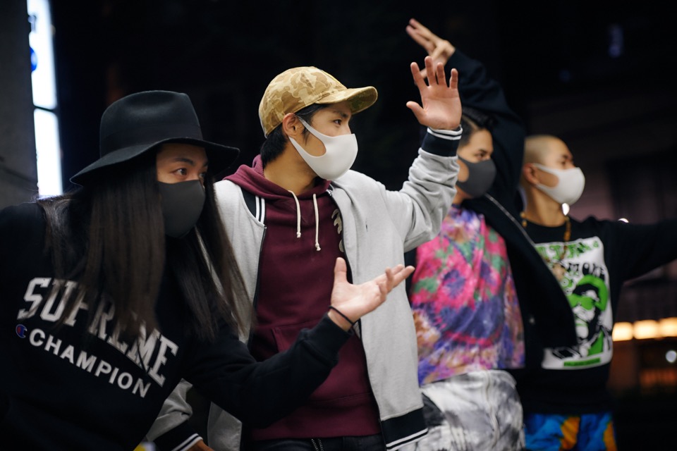 ということでストリートで練習しているダンスチームを探してみると、偶然にも普段からPITTA MASKを使用しているというダンスチームに巡り会えた。
