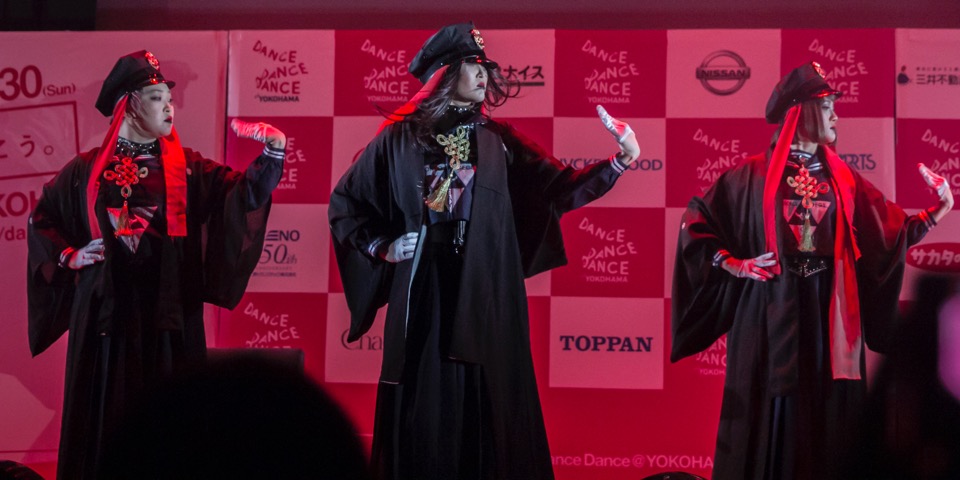 自主制作のPV『ゲゲゲイの鬼太郎』は再生回数が2週間強で300万回を超えるなど、独自の世界観と奇抜なダンスで話題を呼ぶ東京ゲゲゲイ。 彼女らが「Dance Dance Dance@YOKOHAMA 2018」の開催概要記者会見にてライブを披露した。