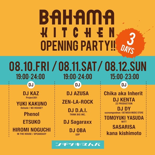 そして8/10-8/12の3daysでオープン記念パーティーを開催。