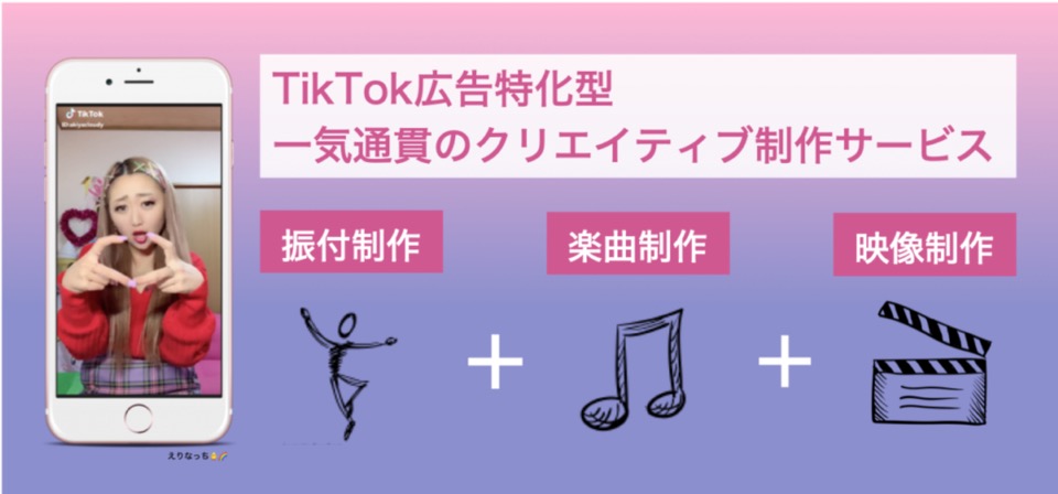 これらの特性を活かし、 当社はTikTokや抖音 Douyinの媒体にフィットした「ダンス」や「楽曲」、 「映像」を一気通貫で制作サービスを提供しています。 また、 TikTokerや抖音 Douyin インフルエンサーの育成も手がけており、 TikTokerや抖音 Douyin インフルエンサーならではのクリエイティブや感性を取り入れた、 より質の高いクリエイティブを制作しております。