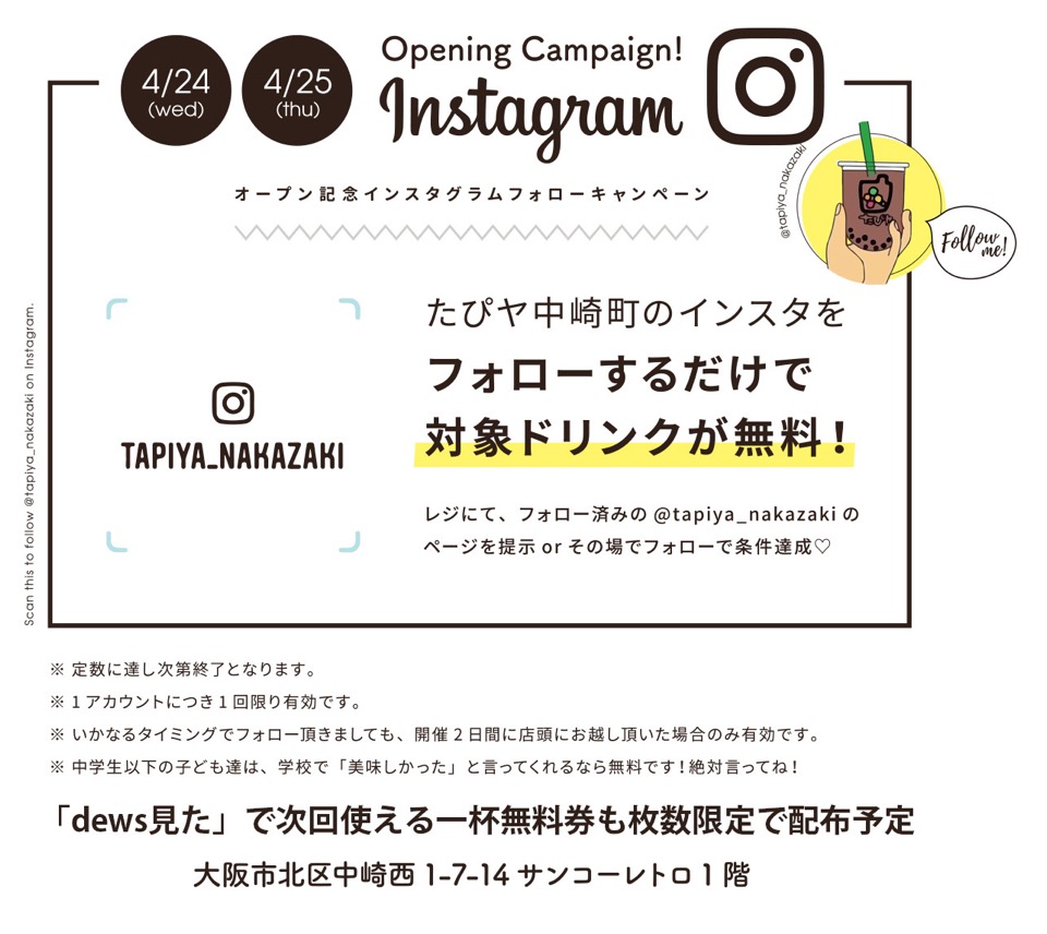 それだけじゃ物足りひんなー。 よし!!Dewsの読者の方へは24 .25 以降インスタフォローしてもって「 Dews 見た」 って言ってもらえばで次回使える一杯無料券差し上げます!!関西圏のDews読者の方も絶対来てね!!