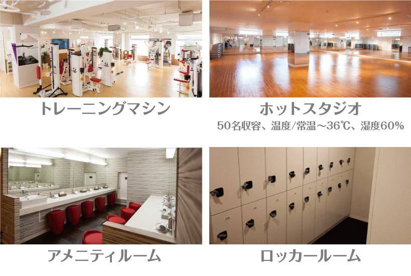 設備:トレーニングマシン、ロッカー、シャワー、アメニティルーム、ホットスタジオ
