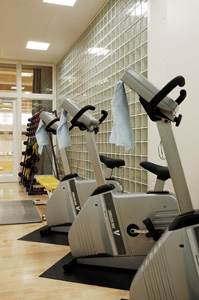 トレーニング室にはバイク5台・リペアマシン・チューブ・ダンベル・バランスボールがあり、1回200円でトレーニング可能です。更衣室・シャワー室もあるので、汗を流して帰れます。