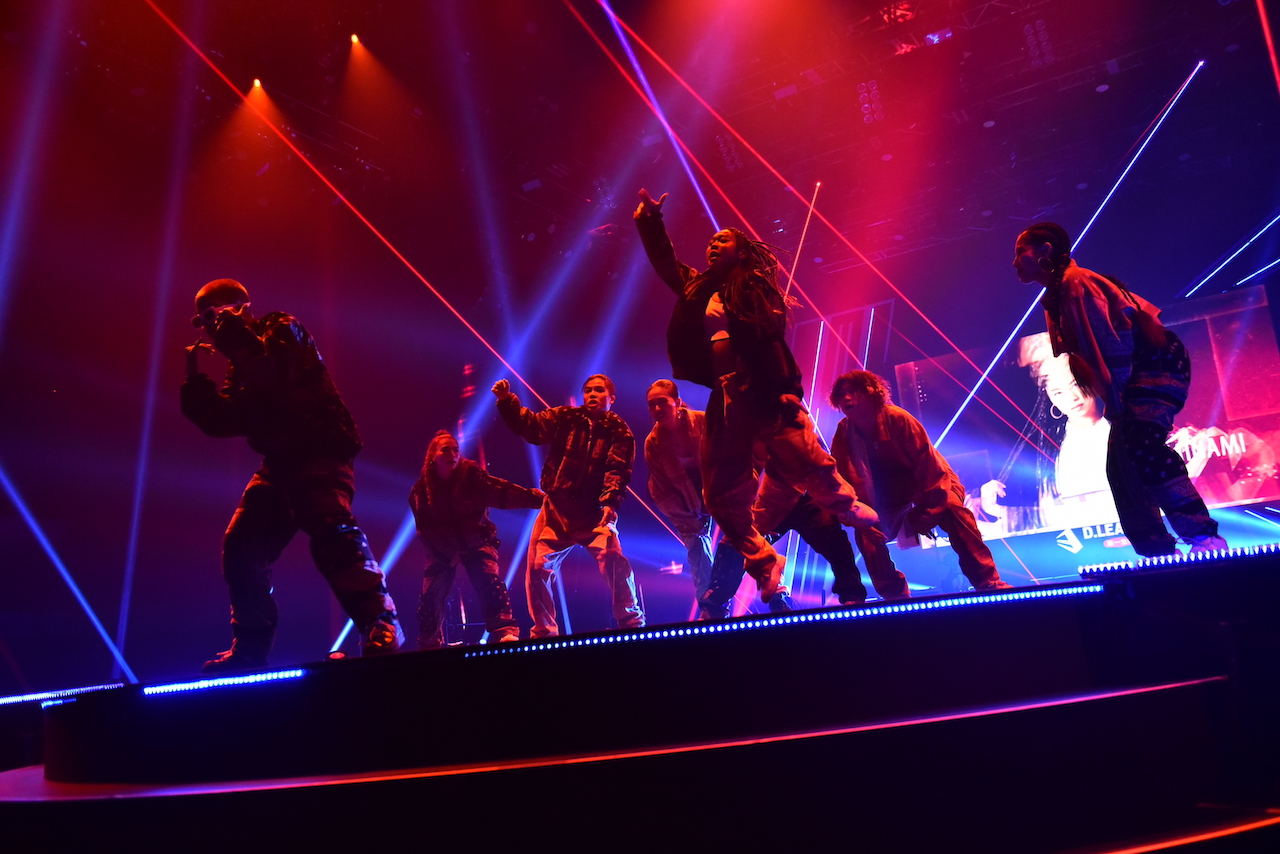 開幕戦を制したSEGA SAMMY LUXはダンス界のレジェンドBOBBYがディレクターを務め、リーダーのCANDOO、J.S.B.undergroundから若手実力者2名、EXPG1万人の中からJ.S.B.オーディションで選出された5名によって構成されたチーム。ROUND.1では未来感のある衣装をまとい、高いスキルと爆発的な熱量を最後まで放出し続けるショーを展開した。彼らのスタイルのベースとなるニュージャックスウィングは16ビートと呼ばれる音どりをする躍動感のあるダンスがベースで、HIPHOPの中でもユニゾンを揃えて踊るときにとりわけ個性が出てしまいやすい。しかし、SEGA SAMMY LUXのショーは32ビートを刻む躍動感と高難易度の振り付けやフォーメーションをガッチリ合わせ、一体感と世界観を印象付けていた。