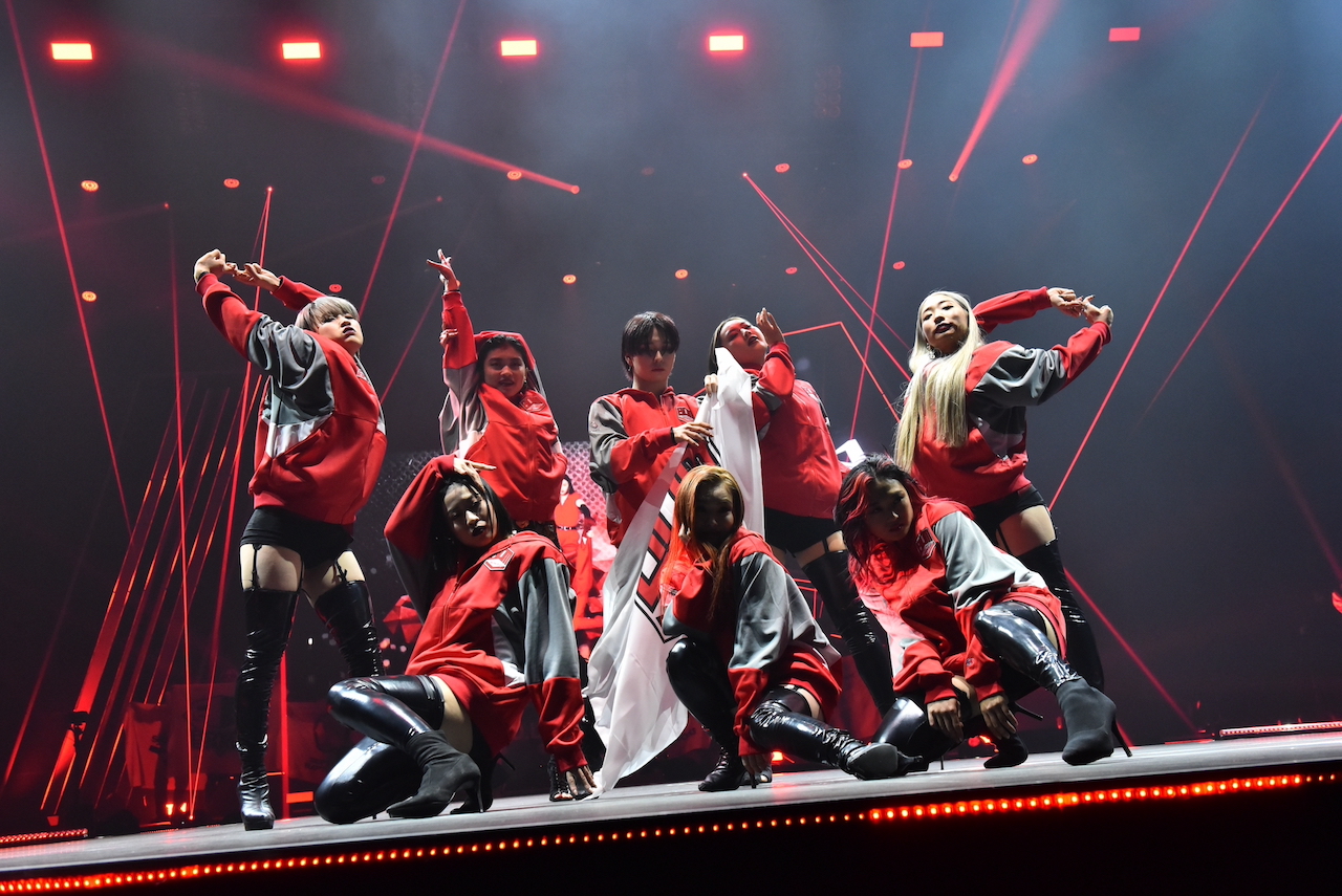 大トリに出てきた肉体派・武闘集団FULLCAST RAISERZは統一感を超えて統率力とも呼ぶべき絆、シナジーとエナジーのあるパフォーマンスを見せてくれた。仁王立ちしたダンサーの胸を踏みつけ階段のように走り抜け、放り投げたキャップをキャッチする大技『マッスル階段』は何度見ても圧巻だ。次々と大技やソロを成功させ、ショーの最後に何が起きたかはぜひ動画でチェックしてほしい。