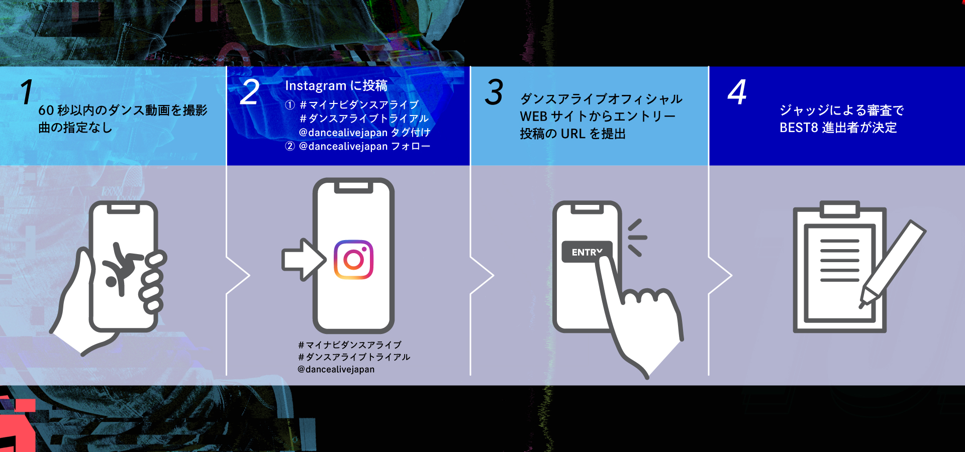 今シーズンは、全予選がオンライン開催!!「Instagram」を使用した動画審査でBEST8に進むダンサーを決定。BEST8~ トーナメントは後日「配信プラットフォーム」を使用して開催されます。