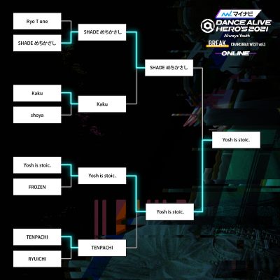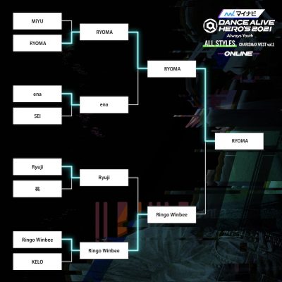 2021年2月28日、国内発信であり世界最大級のソロダンスバトル「マイナビDANCE ALIVE HERO’S 2021」のCHARISMAX WEST vol.1がオンラインにて行われた。今シーズンは全予選がオンラインでの開催。Instagramにダンス動画を投稿しWEBサイトにてエントリー・BEST8に進出できる8名をジャッジによる動画審査で選出。BEST8以降はトーナメント方式で開催、配信のカタチで行われた。4STYLESの2回目の予選となった今回も、EAST vol.1に引き続きBEST8から激戦が繰り広げられオンラインとは思えない盛り上がりを見せた。