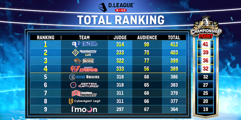 日本発のプロダンスリーグ 「D.LEAGUE」のROUND.5が本日3月3日に行われた。毎ROUND、ジャッジポイントは接戦が続くなか、他チームと4点差をつけたakihic☆彡率いるSEPTENI RAPTURESがROUND.5を制する結果となった。ROUND.5の結果は以下。