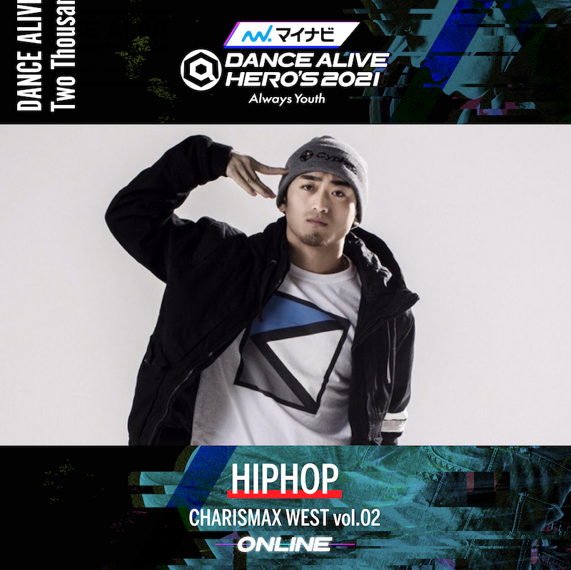 2021年3月21日、国内発信であり世界最大級のソロダンスバトル「マイナビDANCE ALIVE HERO’S 2021」のCHARISMAX WEST vol.2がオンラインにて行われた。今シーズンは全予選がオンラインでの開催。Instagramにダンス動画を投稿しWEBサイトにてエントリー・BEST8に進出できる8名をジャッジによる動画審査で選出。BEST8以降はトーナメント方式で開催、配信のカタチで行われた。今シーズン最後の一枠を決めるWEST vol.2にてFINAL出場権を得たのは下記の4名。