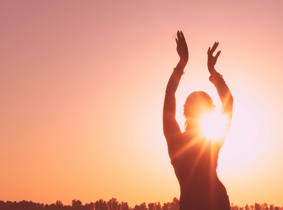 まず深く吸った息と共に、空から光の球が脳天へ入ってくるイメージを浮かべます。それが吸う息と共に後頭部〜首〜背骨〜腰と降りてきて、丹田で止まり、光の輝きを増していきます。