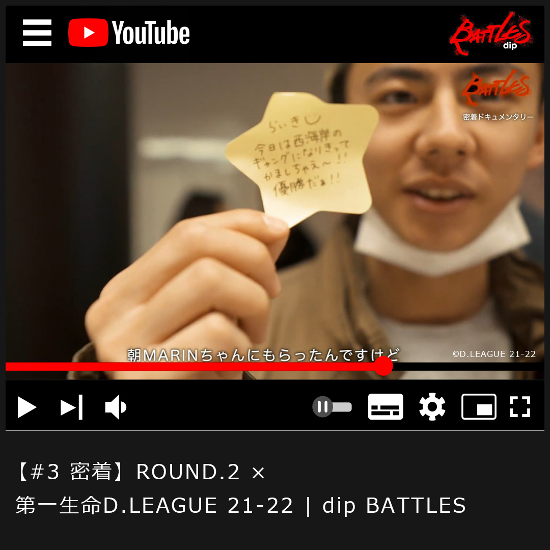 【dip BATTLES】【D.LEAGUE】ROUND.2 密着ドキュメンタリーをYouTubeにて公開。