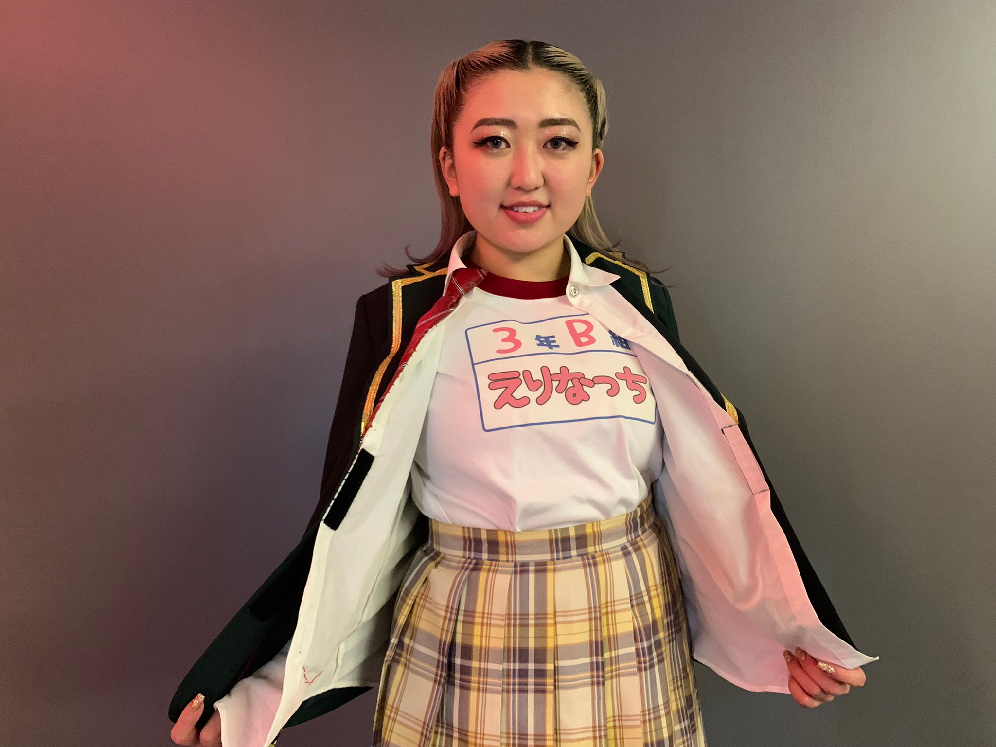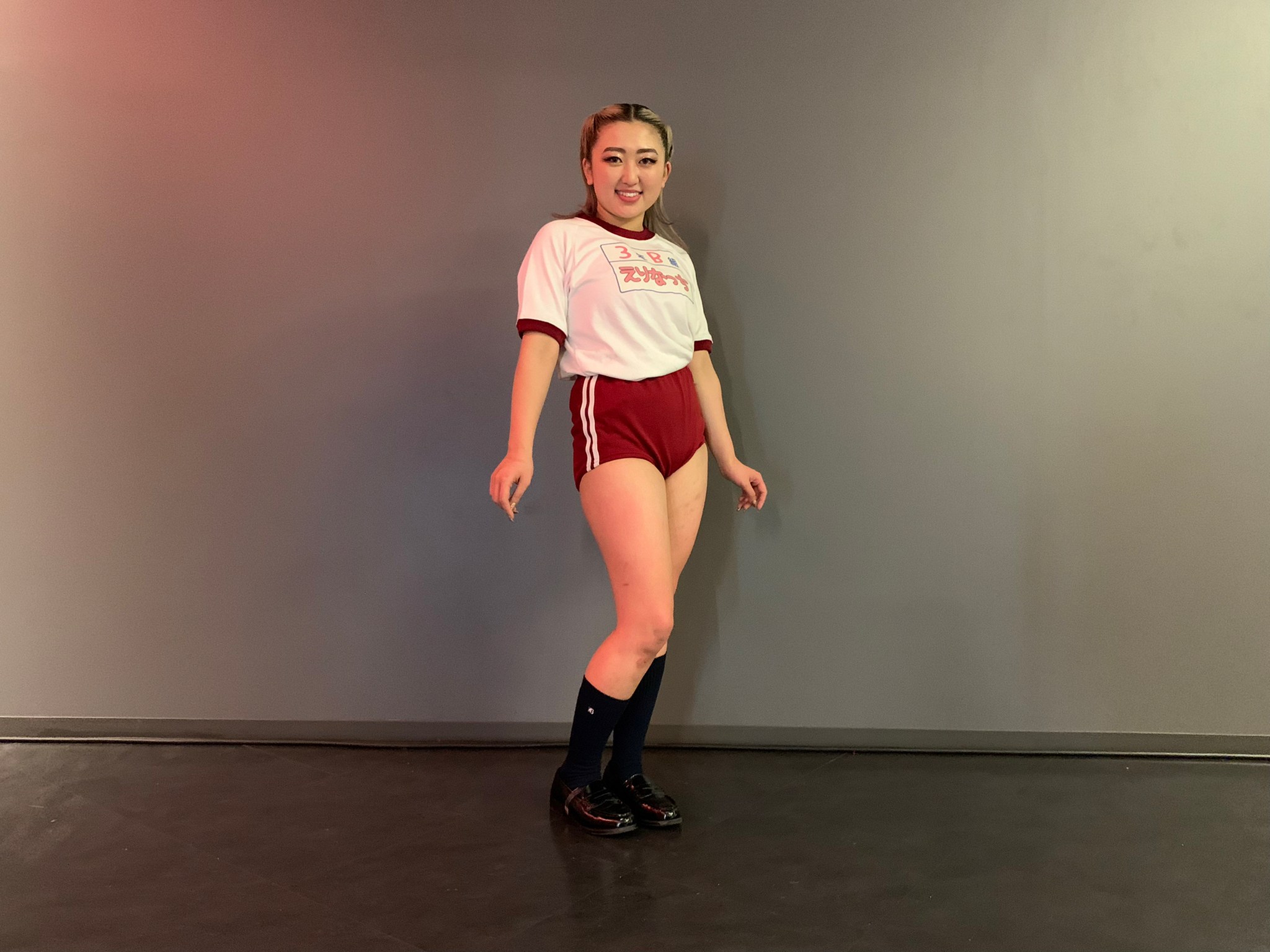 昨シーズンに披露し話題となった学園もののコメディー作品を、引き続き今シーズンでも再演するかのような構成にしたので、衣装も前回同様の学生服を使用しました。そのため、続編をイメージしやすい新たな作品になったかと思います。また、SPダンサーとして参戦してくれたえりなっちが面白くなるように、でも作品を潰し合わないように、体操着や靴下のニュアンスなども本人と話合って決めました。衣装もヘアスタイルも、この作品をより面白くしてくれる大事なポイントだったので、細かい部分まで地味にこだわりました。