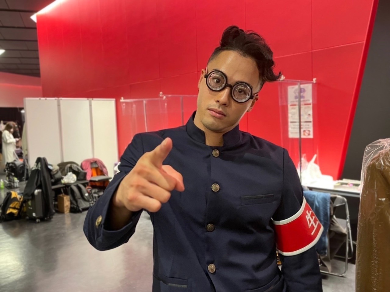 地味に苦労したのは、「REO イケメン問題」で、たくさんの丸メガネを用意したのにイケメンが消せなかったことです…最終的には前があまり見えないビン底メガネに行き着き、あのメガネで踊り切った彼は本当にすごいなと尊敬しました。肩の腕章の「生徒会」の文字は一文字づつ切り抜いて縫い付ける地味に大変だったポイントです。