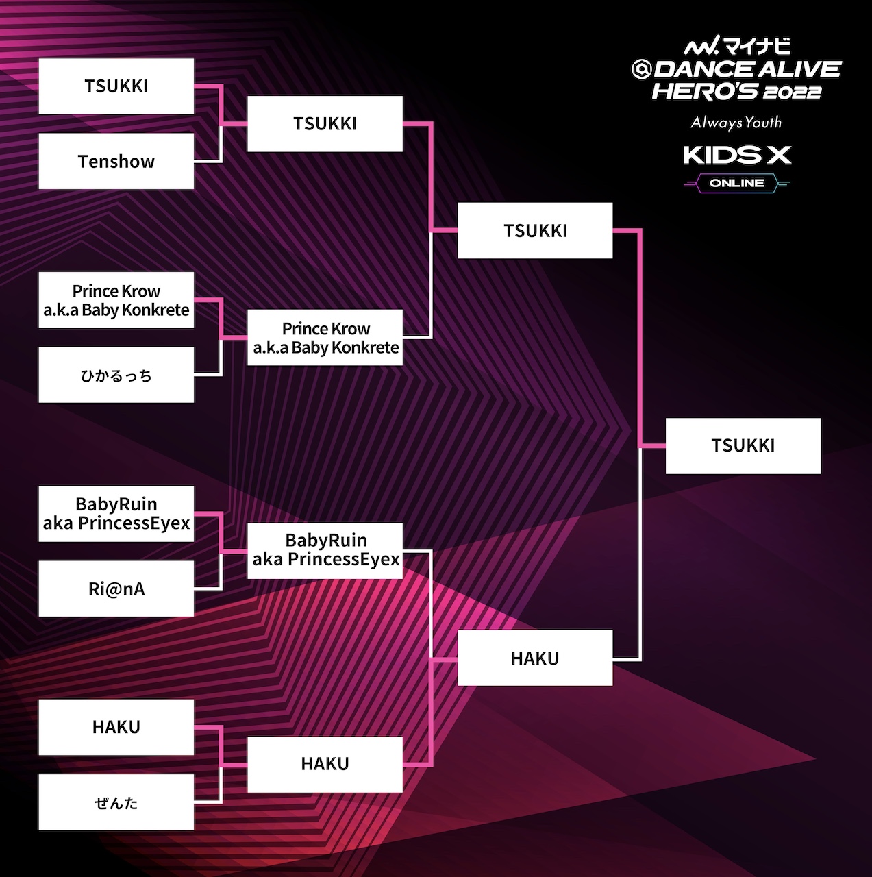 【バトル動画公開】優勝はTSUKKI !/マイナビDANCE ALIVE HERO’S 2022 KIDS X ONLINE 結果