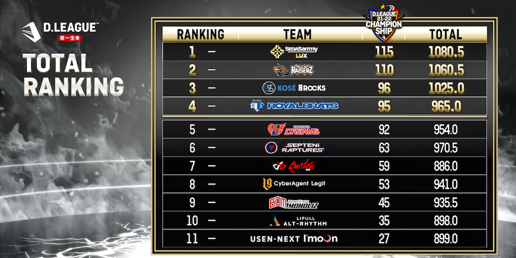 REGULAR SEASON WINNERはSEGA SAMMY LUX!CHAMPIONSHIPに進出する6チームが確定!第一生命 D.LEAGUE 21-22