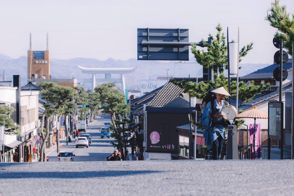 O B A氏は2017年、住居のある鎌倉から島根県の出雲まで「歩く」旅に出る。一本歯と地下足袋で、767kmを28日間。最終的には出雲での短編映画の撮影が目的だったが、「歩く」という原始的な行為が彼にさまざまな気づきを与えてくれたという。