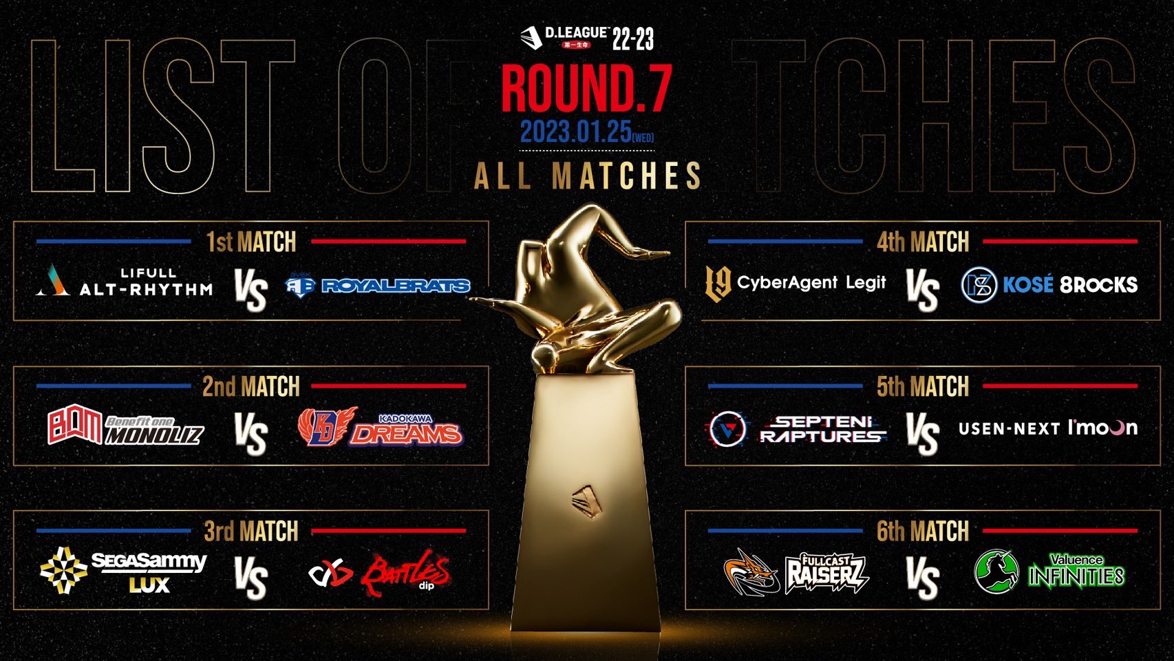 プロダンスリーグ「第一生命 D.LEAGUE 22-23」のROUND.7が2023年1月25日・東京ガーデンシアターにて行われた。
