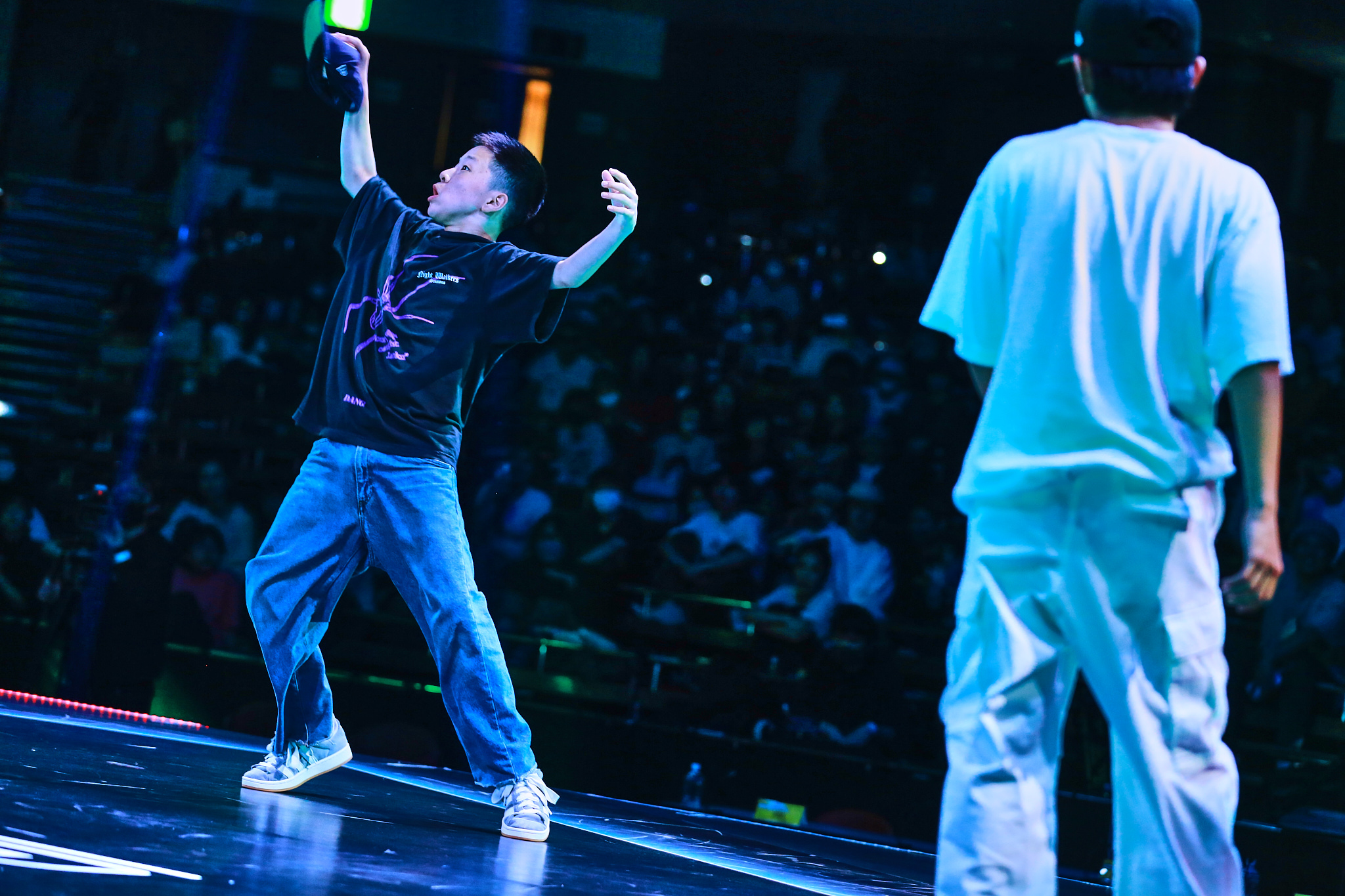 2ndムーブではHIPHOPが流れ、武蔵は伸びやかにリズム遊びとアクロバットを取り入れたダンスを見せる。一つ一つの技に余韻を作りしっかり相手へのアピールも決めていった。Lil Krow a.k.a Baby Konkreteはそれに応えるように、武蔵のようにハンドウェーブから体に音を閉じ込めると、舞台を広く使ったアームスウィングで爆発的に会場を沸かせた。バトル相手を意識したムーブに遊びを入れながらも、しっかりKRUMPのスタイルを貫き通し試合終了。なんとジャッジ全員がLil Krow a.k.a Baby Konkreteに旗を上げての勝利、FINAL初出場ながら、MYNAVI STAGEで改めて多くの人にそのポテンシャルの高さを見せつけた。