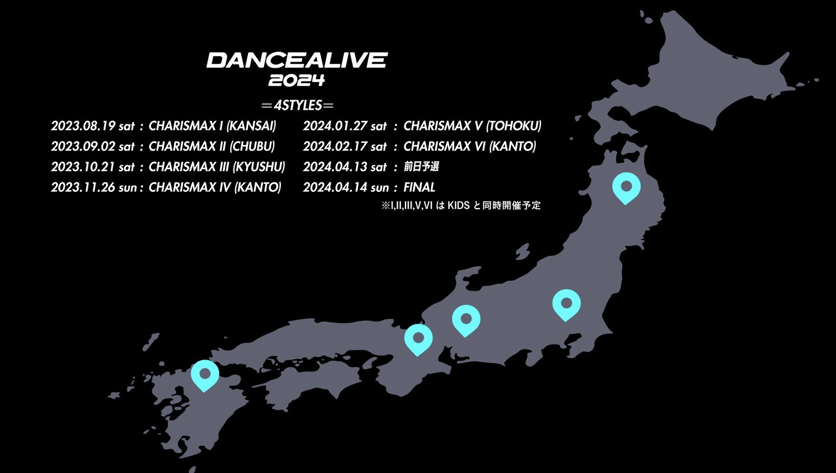 2023年8月19日(土)のCHARISMAX Iを皮切りに予選が開催される。また、2024シーズンの4STYLES予選は新たに九州・中部・東北地区を加え、開催地域も拡大!