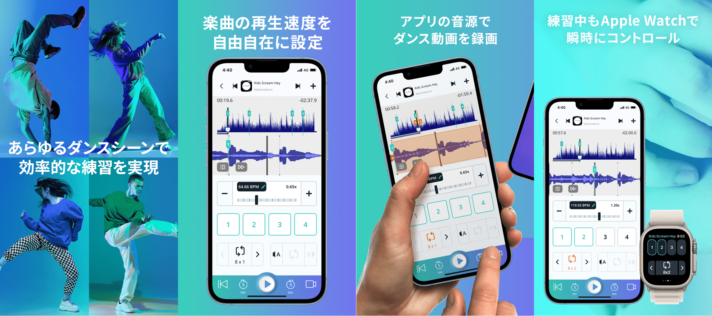 練習効率をグンとあげ、スマホ1台で手軽に音源と動画編集を行うことができる「DanceTribe」。