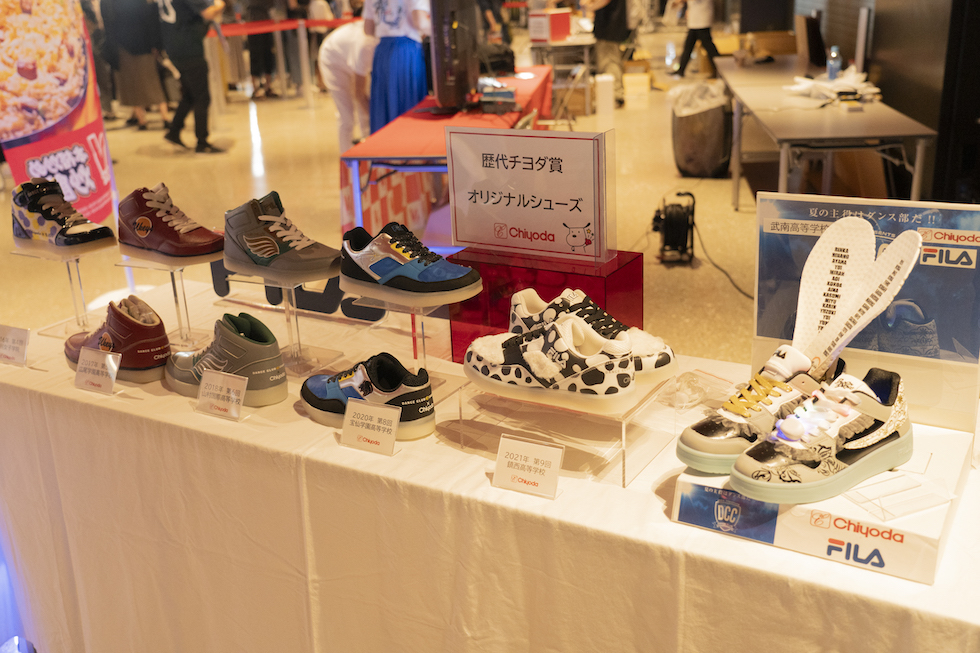長い間DCCをサポートしているチヨダは、毎回「チヨダ賞」として、オリジナルシューズを作れる権利を提供していて、ブースでは歴代のオリジナルシューズが展示されていました。
