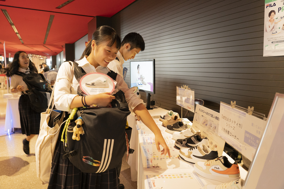 ブースでは、ダンス好き高校生に大人気のシューズ「FILA Tattica」シリーズがたくさん展示されていました!