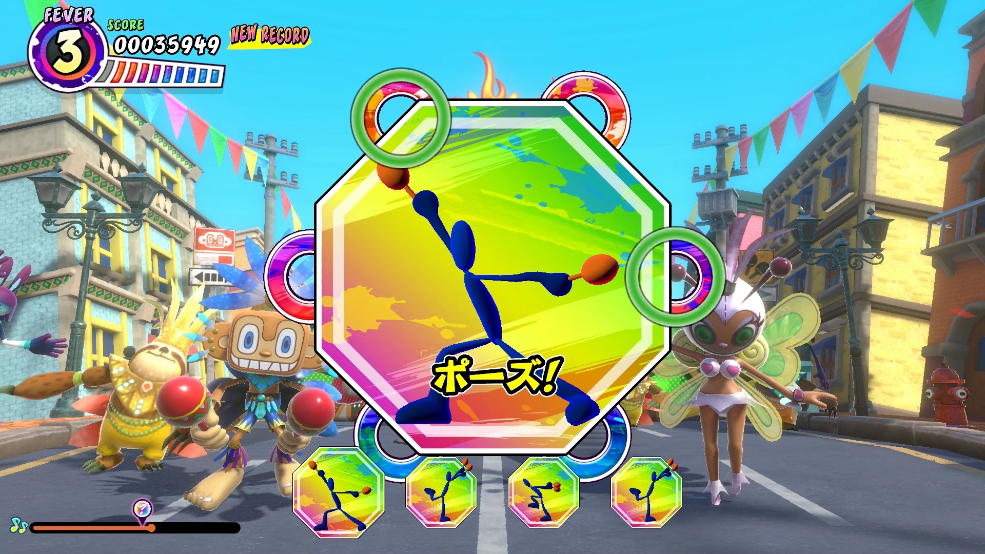 『サンバDEアミーゴ:パーティーセントラル』では、NORMAL、HARD、SUPER HARD、そして体を動かしまくるCRAZYの4モードがあり、STAFFからの「挑戦してみる価値はありますよ!」と熱烈なリクエストを受けCRAZYに挑戦することに!突如画面に発生するポーズやダンスをしっかりと決めていく必要がある。