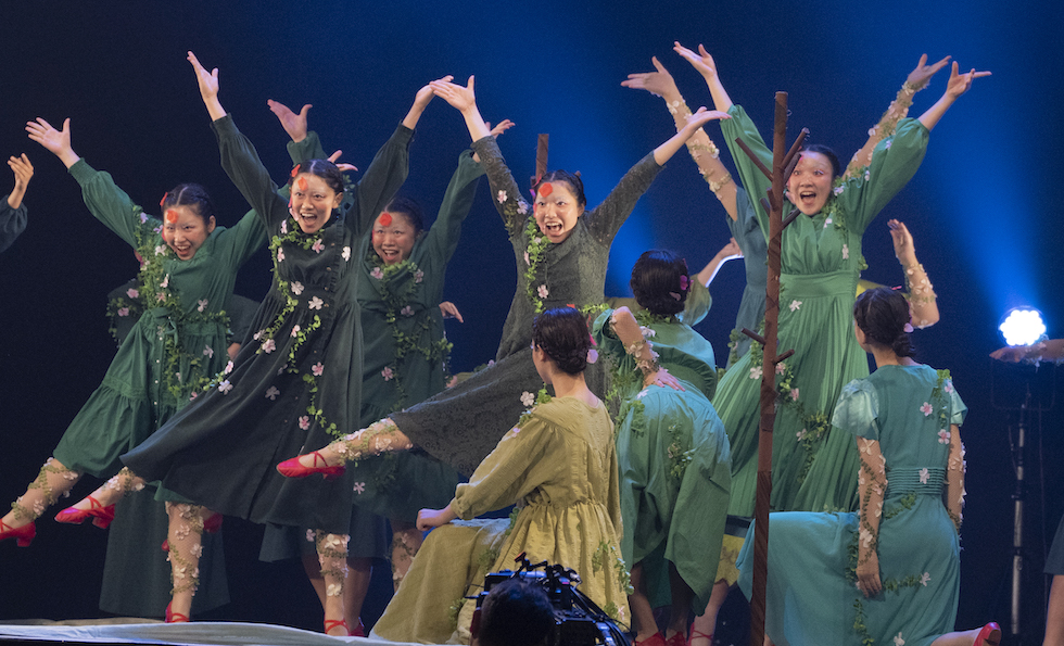 木のそばで踊る「スロー」の人たち、緑の布で仕切られた「モヤのかかった」人たち、何にも影響されず「クラップで通り過ぎる」人たち、そして1番「普通に踊る」人。