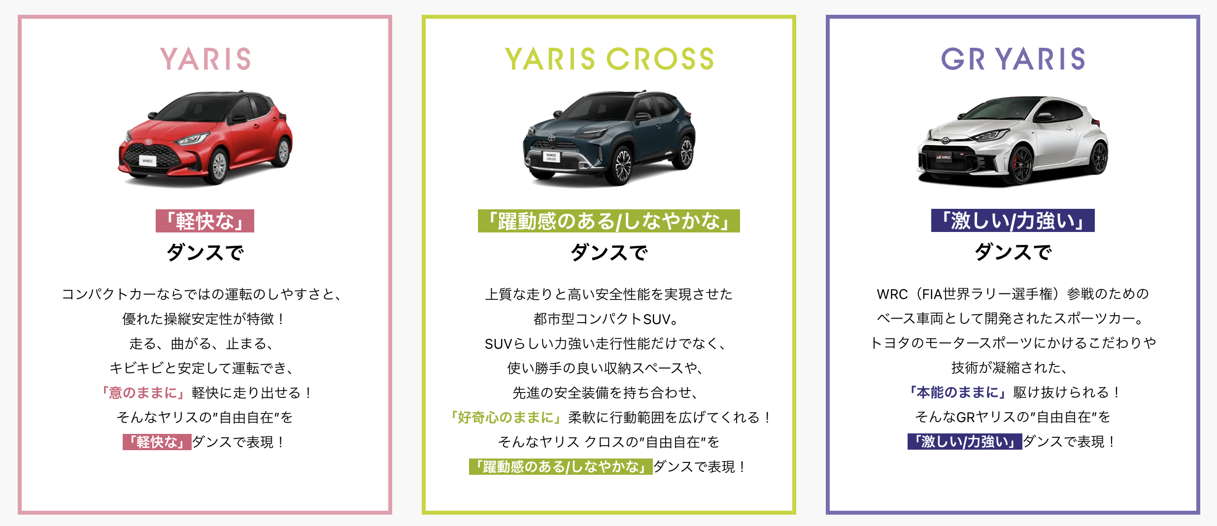 スペシャルな楽曲で意のままに、好奇心のままに、本能のままに、ダンスでYARIS SERIESと共演しよう!