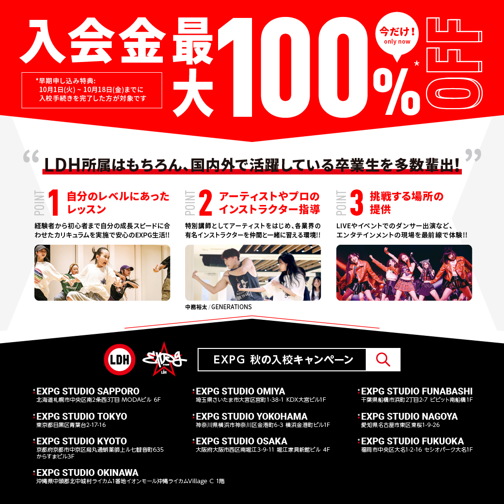 たくさんのお申込みお待ちしてます🌟#EXPG#秋の入校キャンペーン#キャンペーン実施中 pic.twitter.com/KrzOKBPlfl— EXPG STUDIO (@expg_studio) September 6, 2024