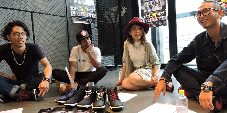 2015年9月某日、本州の各地大学ダンス連盟会長達が、ストリートダンスをコンセプトにしたシューズブランド「JADE」の原宿店に集結した。東北からPENETRATE会長 木下一樹、関西からSYMBOL会長 藤井美咲、東海地区から東海ダンスネットワークのウーラ・タスビル、関東からΣ会長の 林伸之介の4名が集まってくれた。