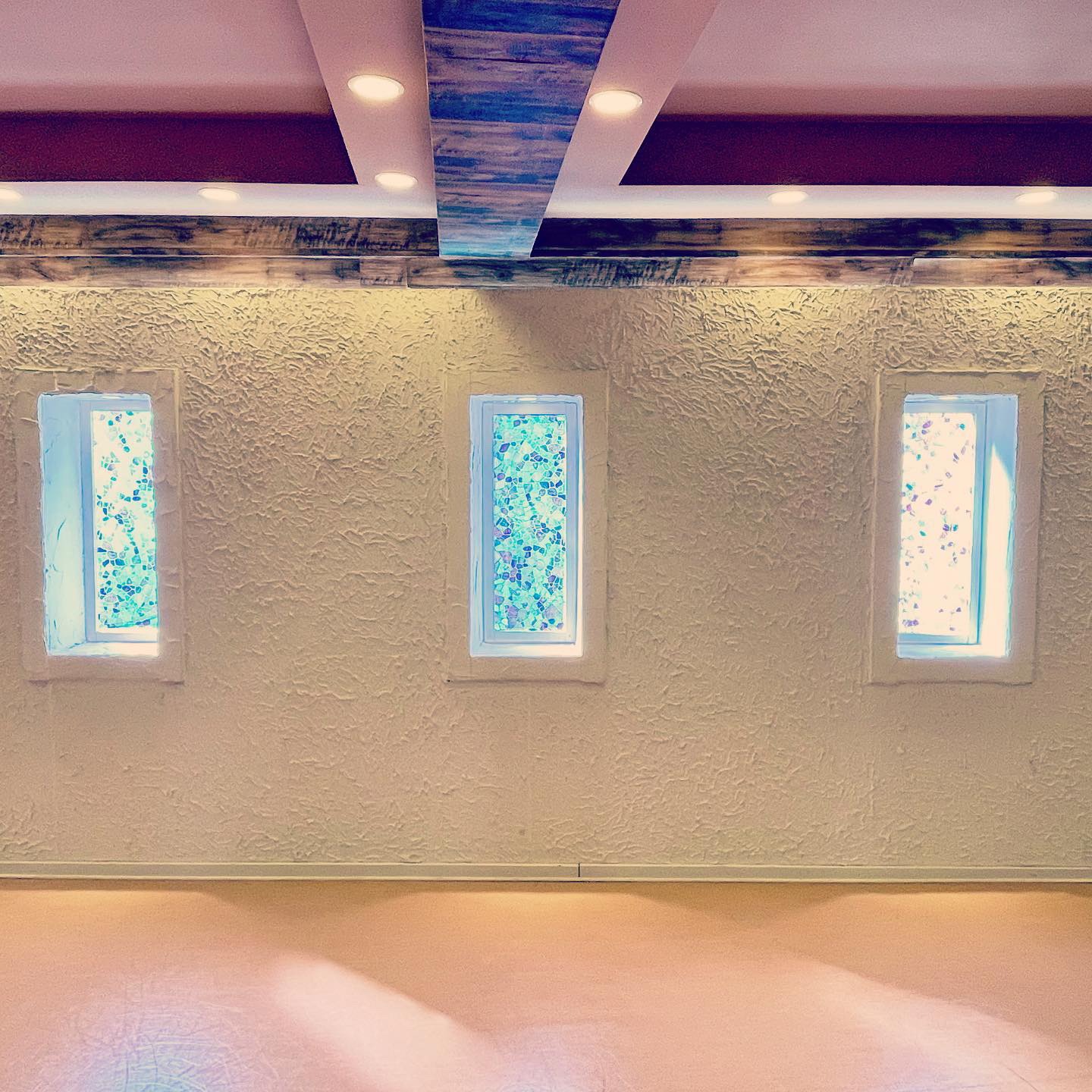 ステンドグラスから入る光であたたかい空間